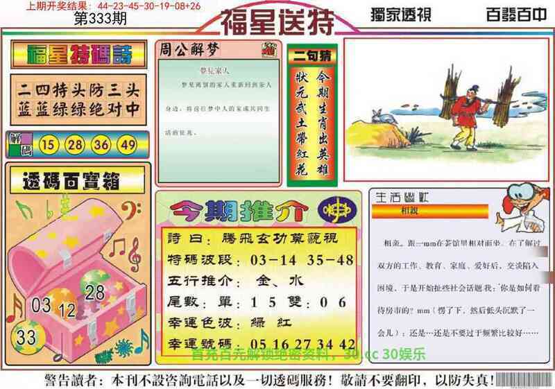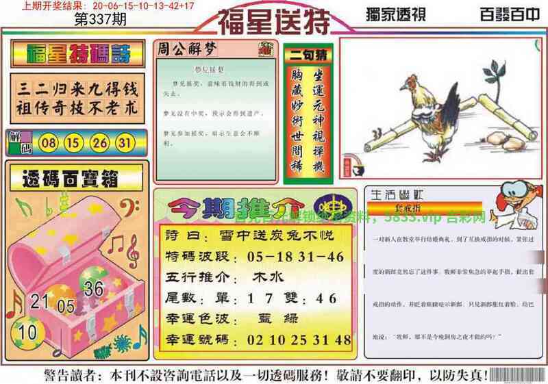 | 331期:绝杀5码【07.31.38.43.44】开:龙26中 |