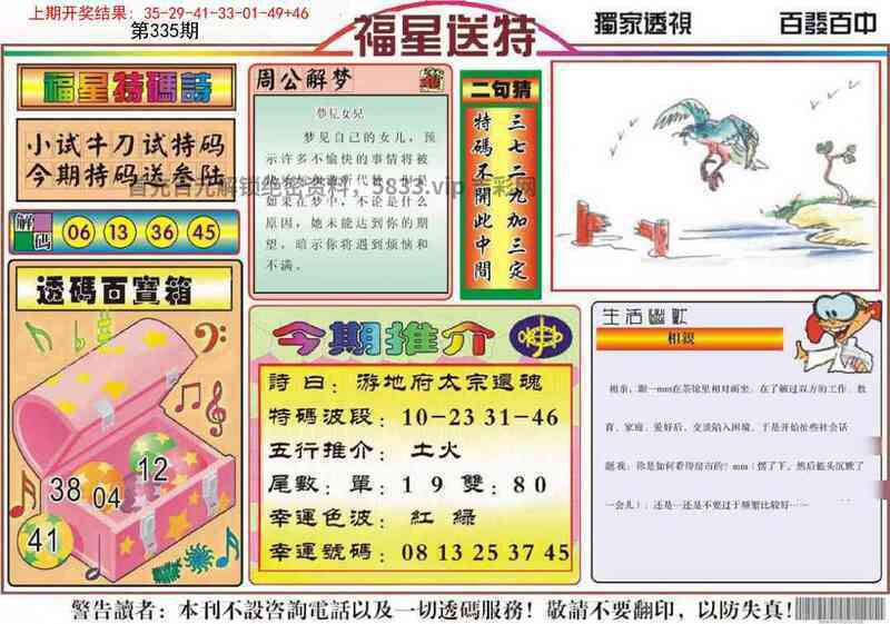 | 335期🎵四门中特🎵【2345门】开:狗44中 |